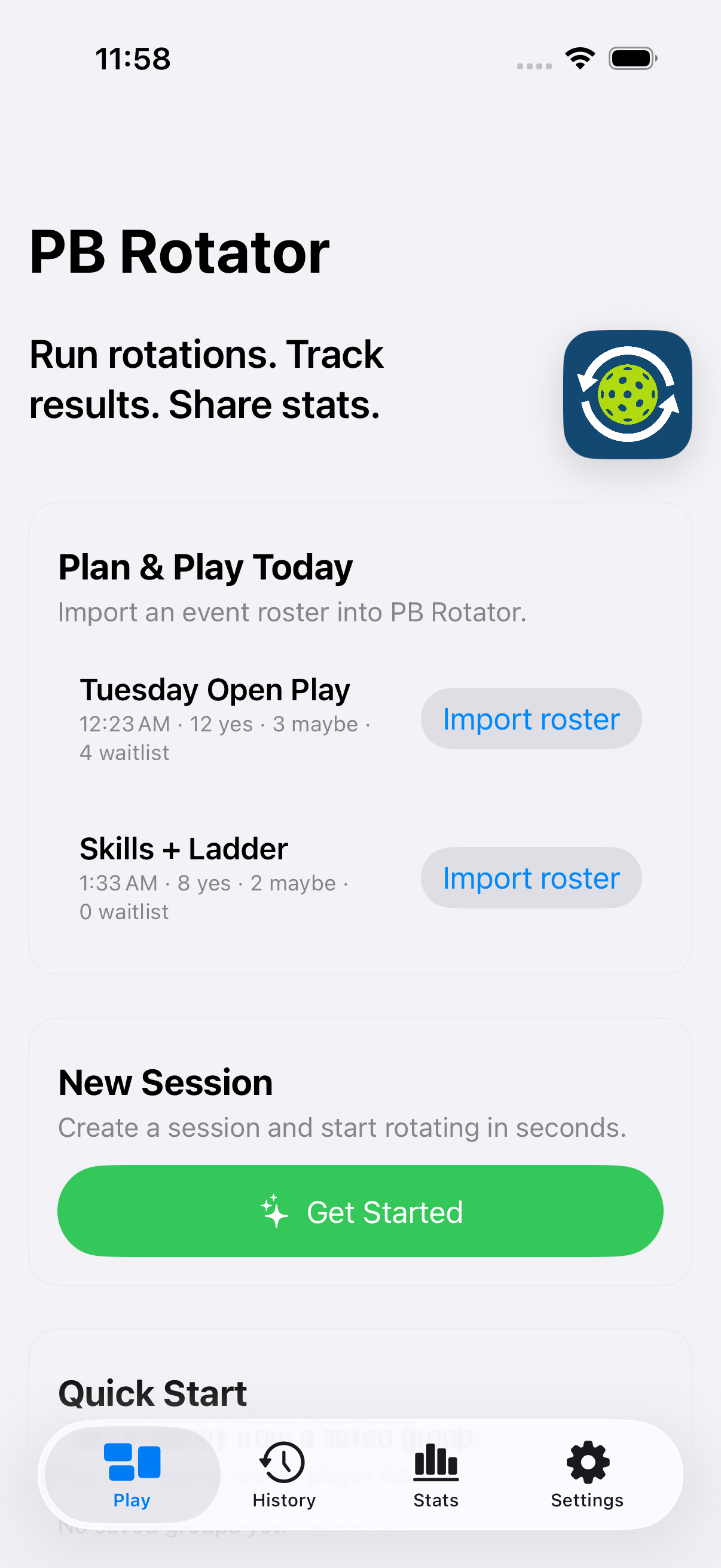 Fast, fair pickleball rotations — in seconds.